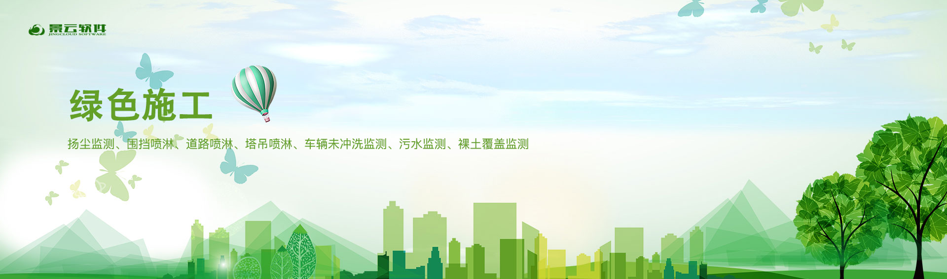 通过在施工现场布设带有GPS模块的环境监测仪,可以对施工现场的PM2.5、PM10、风速、风向、噪声、 温湿度等前端感知设备数据信息搜集、整合、分析,在平台端展现各项信息,对超出预设阈值信息进行告警, 同时自动开启各类的远程降尘喷淋,降至阈值点之下,关闭喷淋,实现绿色施工的目的。
